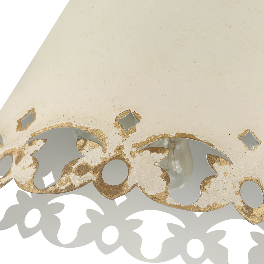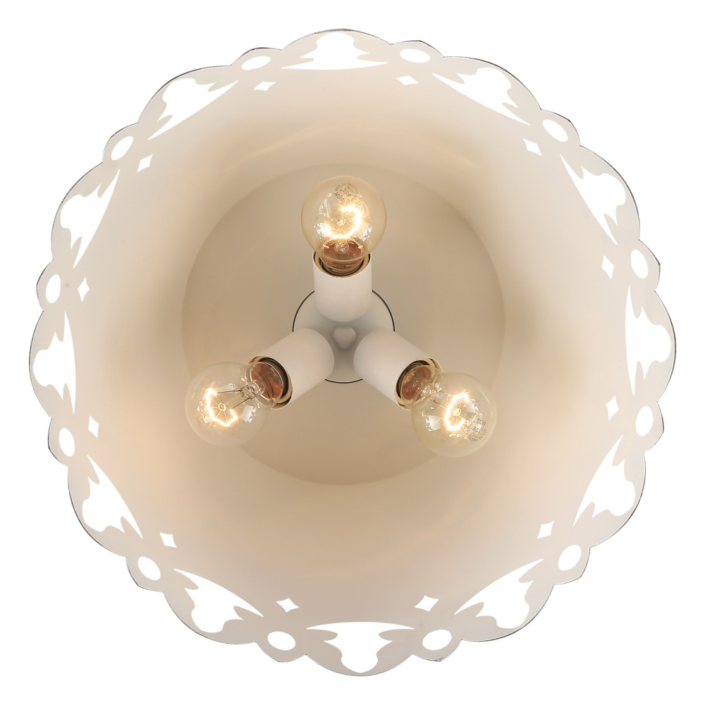 Bring farmhouse elegance into your home with the Wry Lighting Eloise 3-light Flush Mount. Featuring a metal shade and a stunning Antique Ivory frame, it creates a welcoming atmosphere perfect for vintage-inspired settings. This metal shade is enhanced by an Antique Ivory finish that evokes the timeless charm of a treasured European heirloom. The creamy off-white base is artfully aged with a delicate craquelure texture and dark antiquing glaze, bringing out its unique character and history. With a damp location rating, it's suitable for covered and semi-enclosed spaces with occasional moisture, making it perfect for bathrooms and covered porches. Ideal for low ceilings, this flush mount design fits beautifully in hallways, closets, laundry areas, and more, providing ample illumination. Overall dimensions are 15.38"W x 9.75"H x 15.38"D, requiring 3 E26 Medium base bulbs (not included), with a maximum wattage of 60 per bulb. Each light fixture is carefully hand-painted, showcasing artisanal finishes that make every piece unique. Experience the blend of craftsmanship and vintage charm that the Wry Lighting Eloise collection brings to your home.
