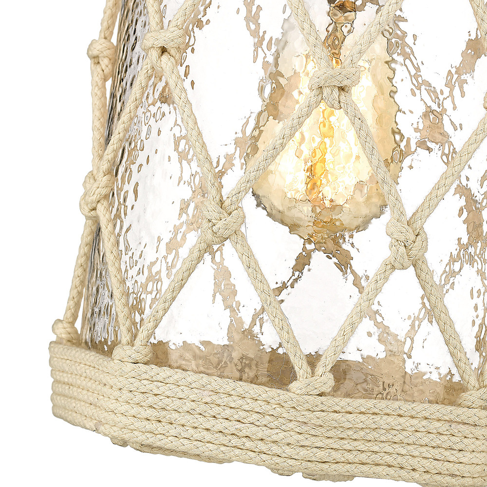 Capture the essence of seaside elegance with the Wry Lighting Nassau 1-light Pendant. Featuring a glass shade and a matte black frame, it creates a warm and inviting atmosphere. The hammered clear glass shade is designed to create a sparkling, refractive light effect, adding a stunning artisanal touch. The matte black finish, known for its timeless appeal, complements any décor from industrial to contemporary. Damp location rated, this pendant is perfect for covered spaces like dining areas or entryways. Sloped ceiling compatible, the fixture offers easy installation on angled surfaces, enhancing its versatility. The overall dimensions are 7"W x 12.38"H x 7"D, requiring 1 E26 medium base bulb (not included) with a maximum wattage of 100. Elevate your home lighting with this beautiful pendant, cherished by customers for its unique design and quality.