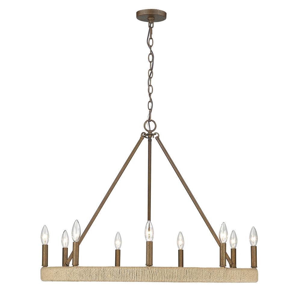 Golden 1022-9 BC - Wry Lighting Yates 9-light Chandelier in Burnished Chestnut