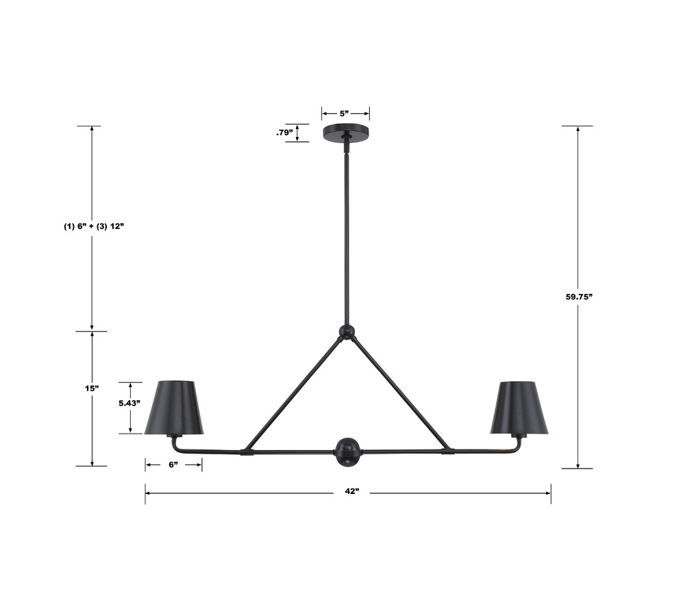 Crystorama XAV-B9306-MK - Xavier 46'' Matte Black Linear Chandelier