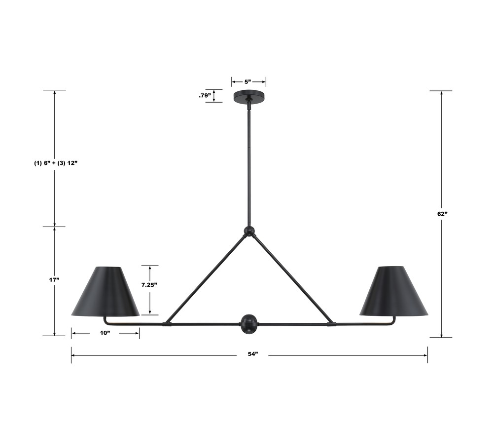 Crystorama XAV-B9307-MK - Xavier 54'' Matte Black Linear Chandelier