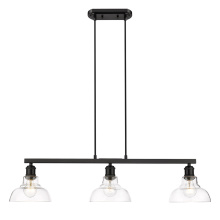 Bring sleek sophistication into your home with the Yep by Golden Lighting Carver 3-light Island Light. Featuring a glass shade and a Polished Chrome frame, it creates a welcoming atmosphere. The Clear Glass shade offers brilliant, unobstructed light. Its polished finish allows the beauty of the bulb and the fixture's design to take center stage, making it ideal for spaces needing bright illumination. The Polished Chrome finish delivers a crisp, clean look that elevates any space. Its mirror-like surface brings stunning brightness to your decor, easily integrating with both ultra-modern and classic styles. Tailored for kitchen islands, this fixture enhances both functionality and flair. It is Damp Location Rated, accommodating covered spaces with occasional moisture. Easily install it on angled ceilings with its Sloped-Ceiling Compatible design and customizable Adjustable Height. Overall Dimensions: 35.5"W x 9.5"H x 8.25"D. Requires 3 E26 Medium base bulbs (not included), with a max wattage of 60 per bulb. Close with lifestyle appeal and quality for your modern home, marrying form and function seamlessly.