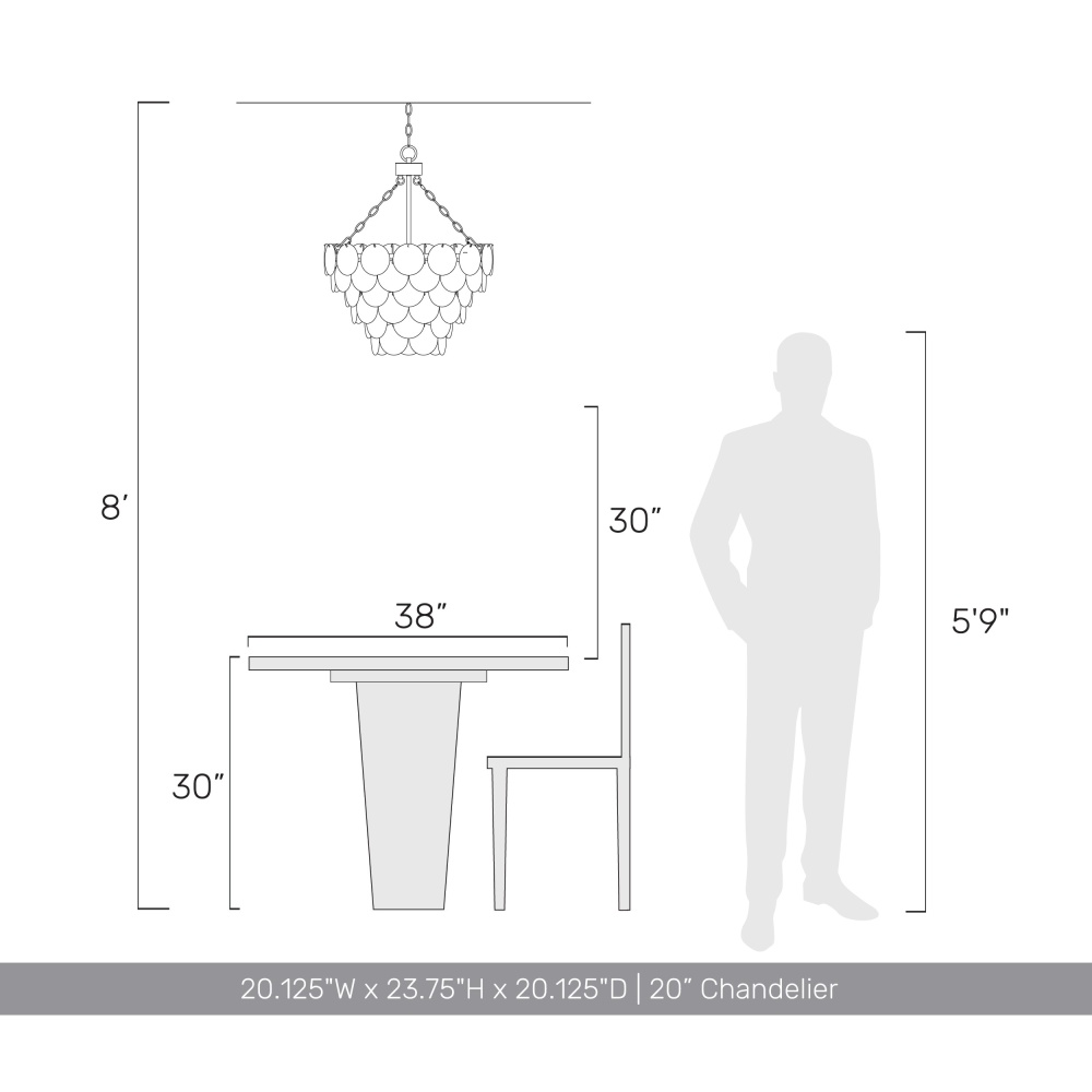 Bring coastal elegance into your home with the Yep by Golden Lighting Cascada 8-light Pendant in Aegean Silver and Smoke Plated Glass. Featuring a glass shade, this stunning piece creates a welcoming atmosphere. Each glass shade exhibits a captivating smoke-tinted finish, with a liquid-like mirrored sheen achieved through an advanced vacuum plating process. This bespoke design transforms from reflective when off to beautifully illuminating when lit. The Aegean Silver finish adds sophisticated texture with a soft satin lustre, seamlessly merging modernity with coastal charm. This refined silver tone complements a wide range of home styles. Ideal for kitchens, dining rooms, and hallways, this pendant is dry location rated for indoor use. The installation offers sloped-ceiling compatibility and is adjustable from 27.5" to 101.5" in height. Overall Dimensions: 20.13"W x 23.75"H x 20.13"D. Requires 8 E12 Candelabra base bulbs (not included), max 60 watts per bulb. Enhance your living space with this exquisite light fixture that highlights quality and elegance.