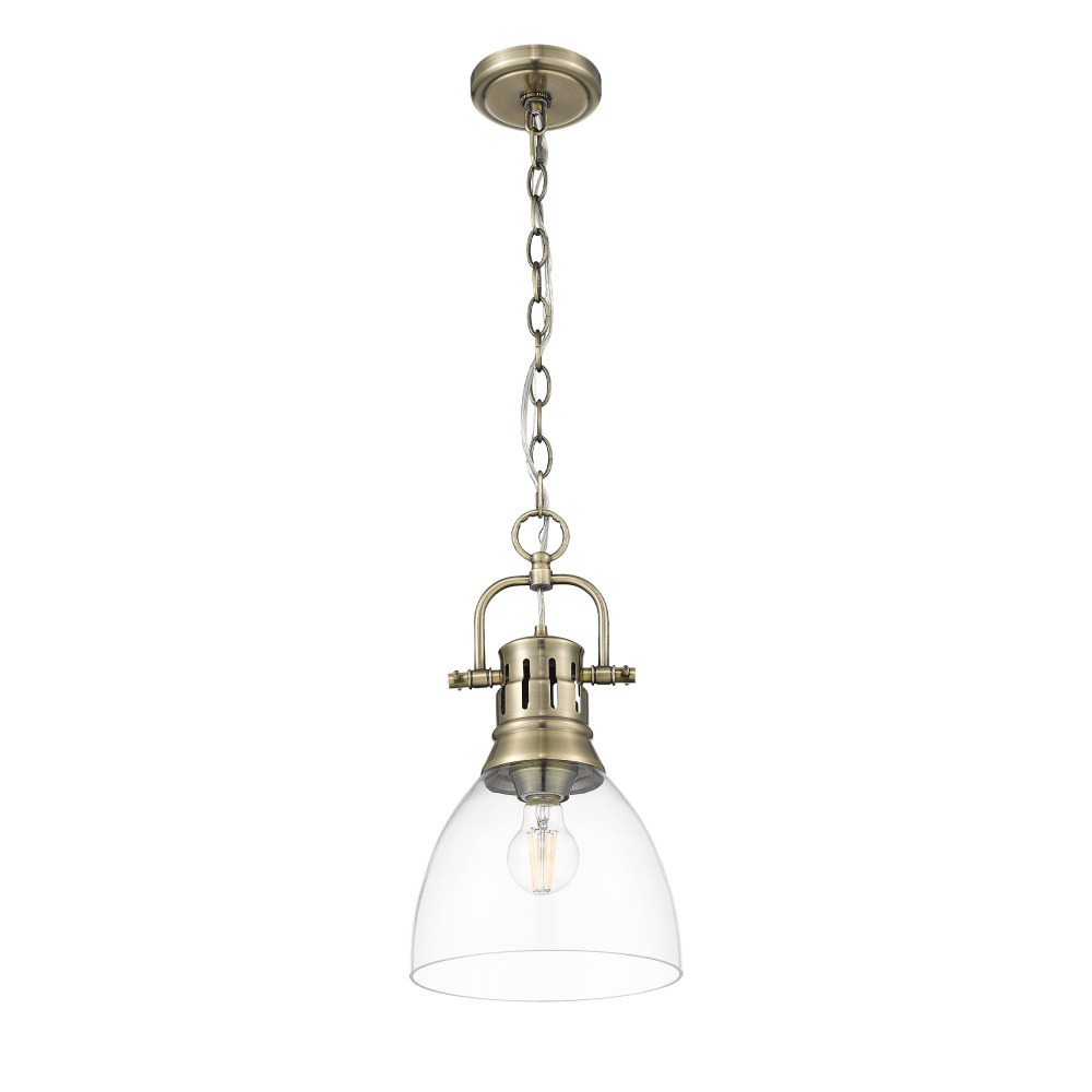 Golden 3602-S AB-CLR - Yep by Golden Lighting Duncan 1-light 9in chain hung Pendant in Aged Brass and Clear Glass
