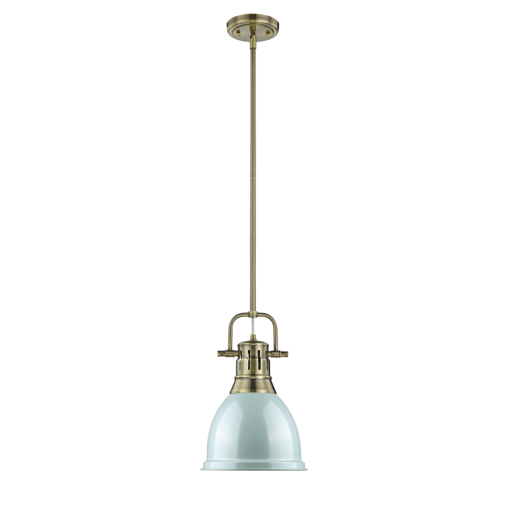 Yep by Golden Lighting Duncan 1-light 9in Rod Hung Pendant in Aged Brass and Seafoam shade
