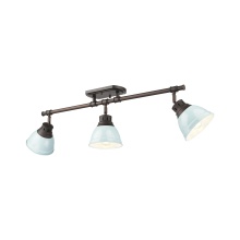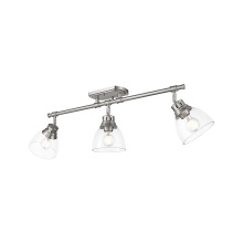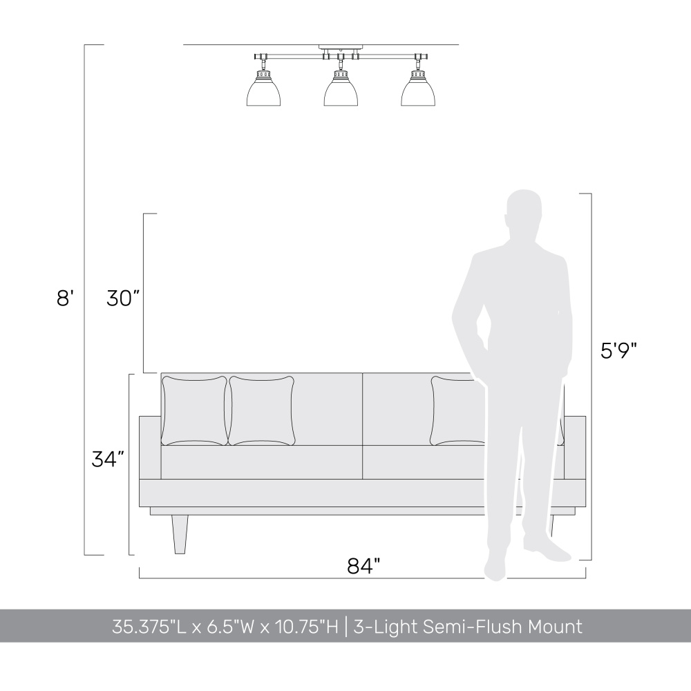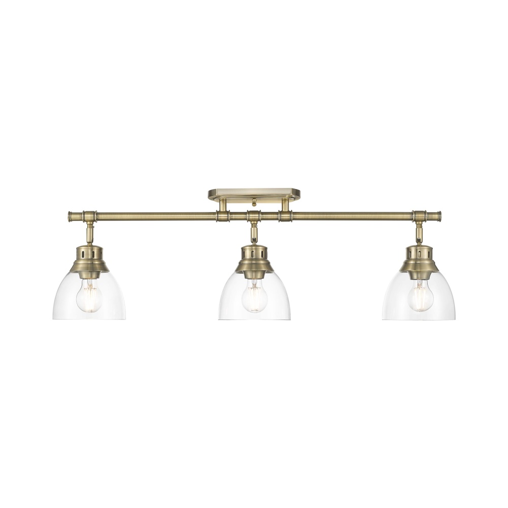 Bring farmhouse elegance into your home with the Yep by Golden Lighting Duncan 3-light Semi-Flush Mount. Featuring a clear glass shade and an Aged Brass frame, it creates a bright and welcoming atmosphere. The clear glass shade offers unobstructed light, polished to a high-gloss shine that beautifully showcases the bulb and fixture design. Complementing this, the Aged Brass finish is applied through a durable electroplating process, ensuring lasting quality and appeal. This fixture is perfect for entryways, bedrooms, kitchens, and living areas with mid-height ceilings, rated for damp locations suitable for covered and semi-enclosed spaces. Installation is hassle-free with adjustable directional heads, allowing you to focus light where needed. With overall dimensions of 35.38"W x 10.75"H x 6.5"D, it requires three E26 medium base bulbs (not included) with a maximum wattage of 100 each. Illuminate your home with swift stylishness and quality.
