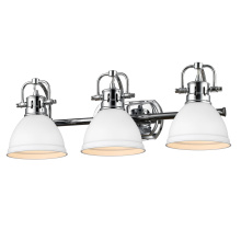 Bring farmhouse elegance into your home with the Yep by Golden Lighting Duncan 3-light Vanity. Featuring a metal shade and a Pewter frame, it creates a welcoming atmosphere. The metal shade shines in a smooth Seafoam finish, echoing the serene colors of the sea while providing a cheerful glow throughout the room. Our Pewter finish offers a soft and classic alternative to brighter silver tones, ensuring a timeless appeal that fits perfectly in both traditional and contemporary spaces. This vanity light is damp location rated, suited for bathrooms and areas with occasional moisture. The adjustable directional heads allow you to personal tailor the lighting to maximize impact in crucial areas. Dimensions: Overall Dimensions: 24.5"W x 8.5"H x 8.25"D. Requires 3 E26 Medium base bulbs (not included), max 100 wattage per bulb. Enhance your home decor with quality craftsmanship and a design that combines functionality and inspiration, perfect for any space.