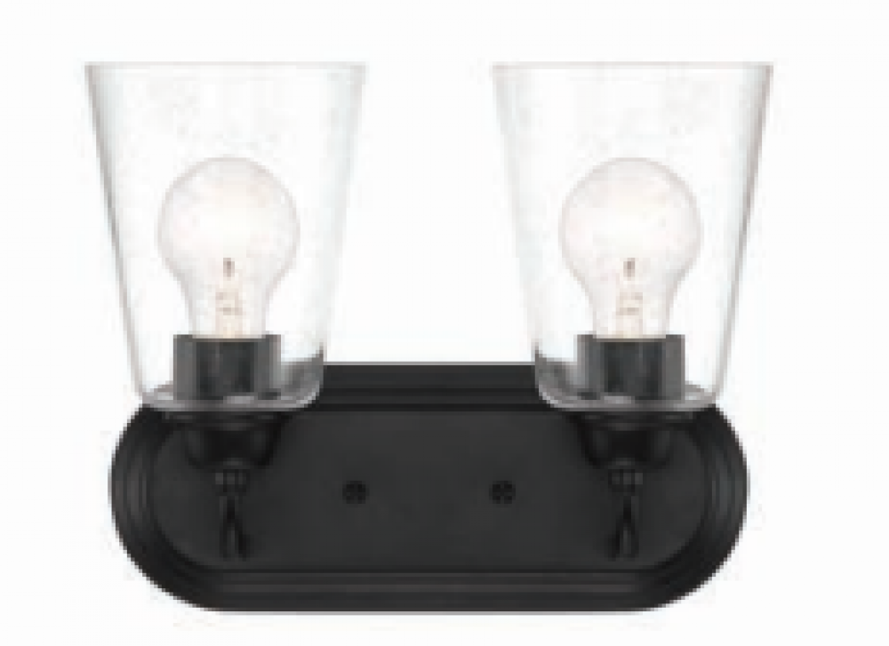 Matte Black 2 Light Vanity with clear seedy glass is part of the Zane collection