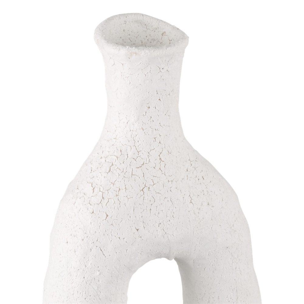 Brutalist in style, the Zante Vase Set includes three ceramic vases with matte white glazing. Though each of these vessels looks smooth from afar, closer inspection proves there is a pitted nature to the glazing that provides a surprising amount of texture. The playful shapes of the white vases will make them stand out as gallery-worthy decorative accessories in any vignette.