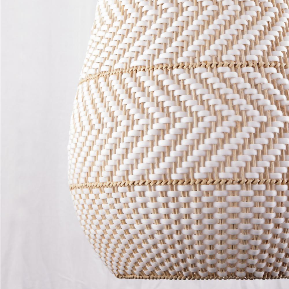 The Zanzibar Collection is an embodiment of laid-back luxe and thoughtful simplicity. By marrying the natural textures of natural rattan with white and/or black lanyard, the fixture introduces a striking color palette with a soft gold finish that instantly brings comfort and style to a living space Handcrafted with precision, the intricate weave introduces texture and depth to your décor. Whether suspended over a breakfast nook or in pairs above a kitchen island, the Zanzibar exudes an earthy, elegant charm that brings an artisanal touch to your decor.