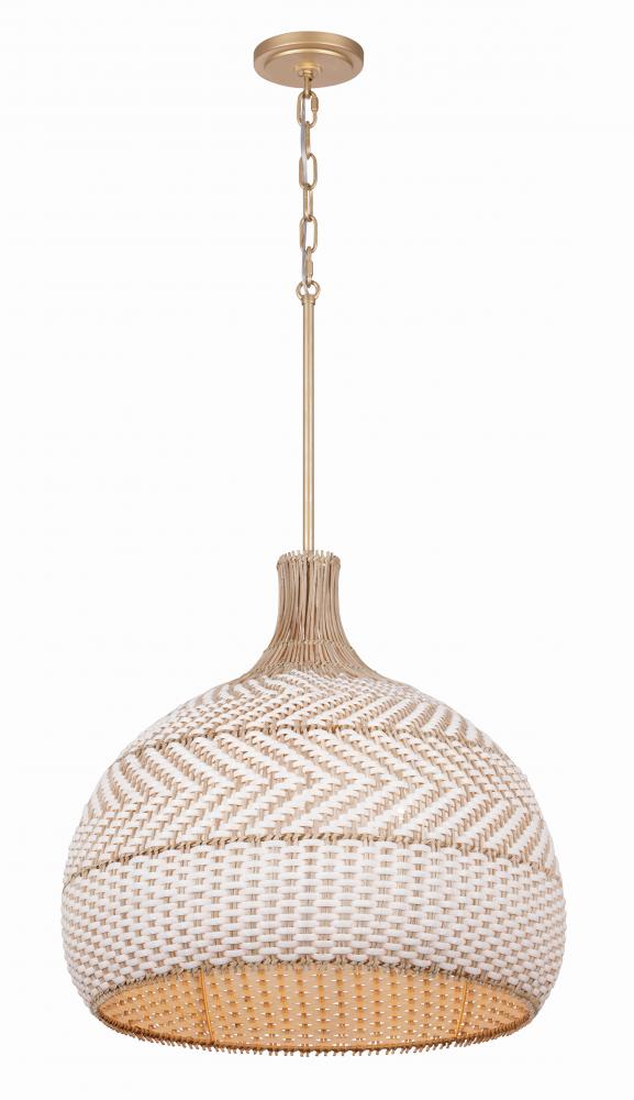 The Zanzibar Collection is an embodiment of laid-back luxe and thoughtful simplicity. By marrying the natural textures of natural rattan with white and/or black lanyard, the fixture introduces a striking color palette with a soft gold finish that instantly brings comfort and style to a living space Handcrafted with precision, the intricate weave introduces texture and depth to your décor. Whether suspended over a breakfast nook or in pairs above a kitchen island, the Zanzibar exudes an earthy, elegant charm that brings an artisanal touch to your decor.