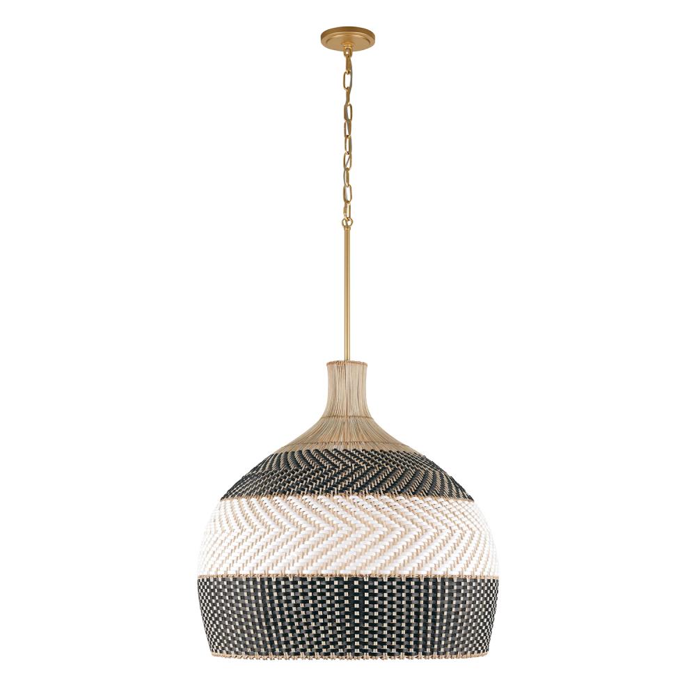 The Zanzibar Collection is an embodiment of laid-back luxe and thoughtful simplicity. By marrying the natural textures of natural rattan with white and/or black lanyard, the fixture introduces a striking color palette with a soft gold finish that instantly brings comfort and style to a living space Handcrafted with precision, the intricate weave introduces texture and depth to your décor. Whether suspended over a breakfast nook or in pairs above a kitchen island, the Zanzibar exudes an earthy, elegant charm that brings an artisanal touch to your decor.