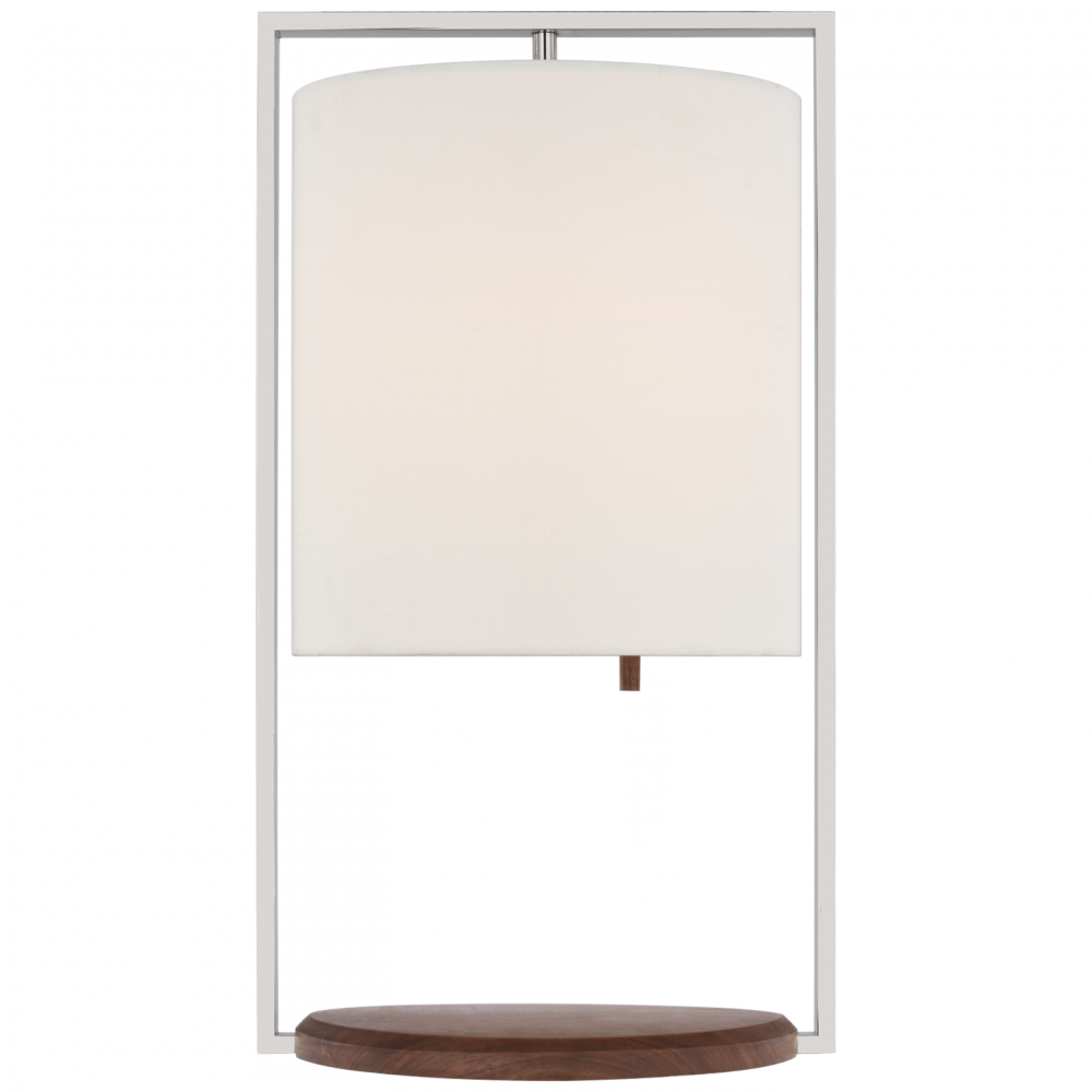 Zenz Medium Table Lamp in Polished Nickel and Walnut with Linen Shade
