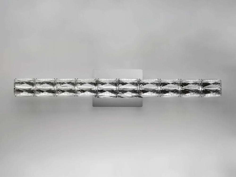 Rectangular Beveled Crystals are banded together to form soft square cylinders which are illuminated by LED that creates a brilliant lighting effect. Some items include metal chassis of Black which frame the crystal for a beautiful silhouette.