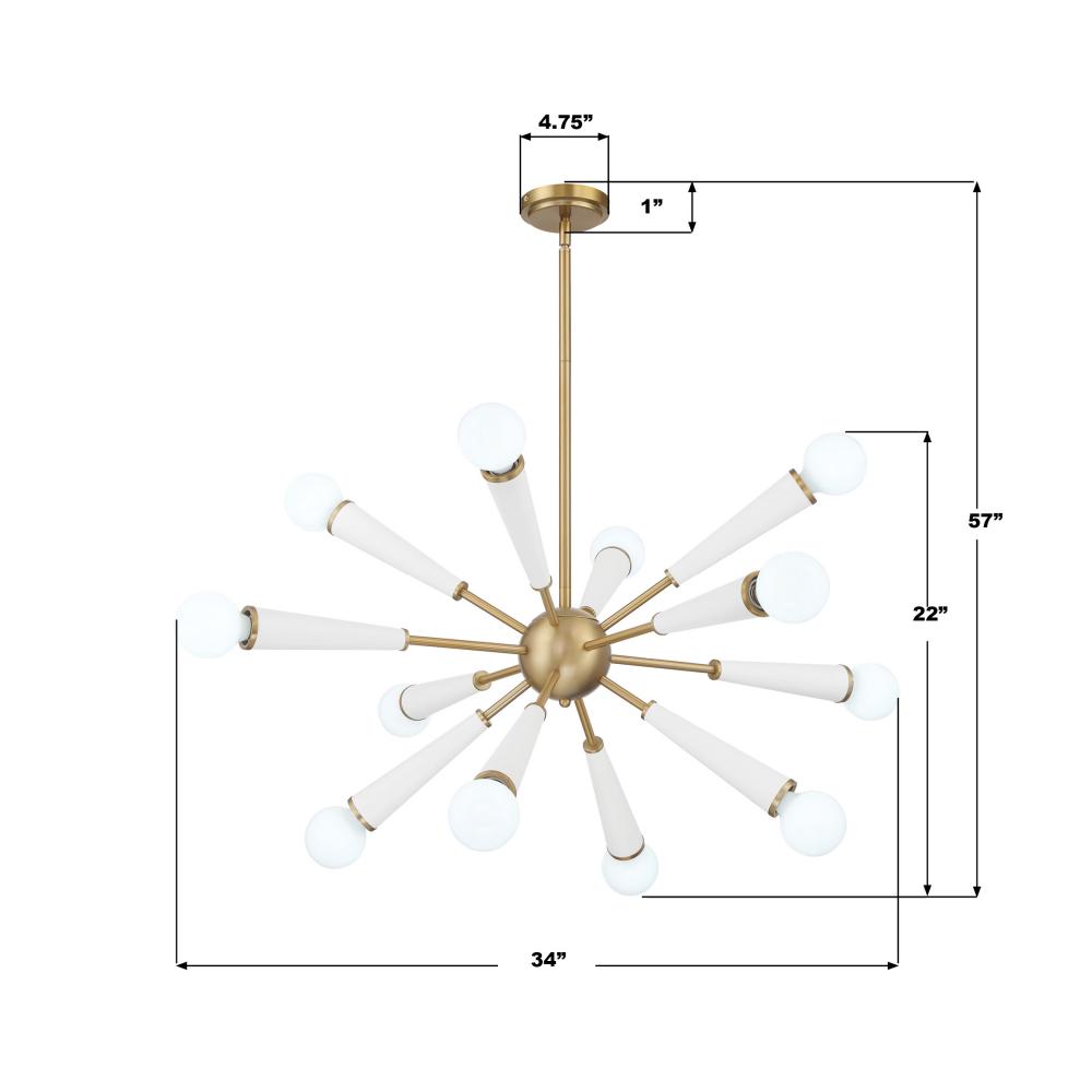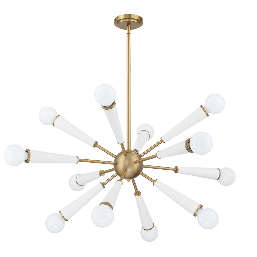 Zodiac 34'' Aged Brass + Matte White Chandelier