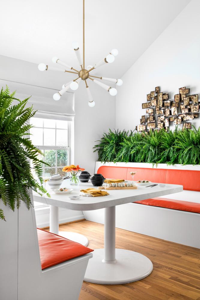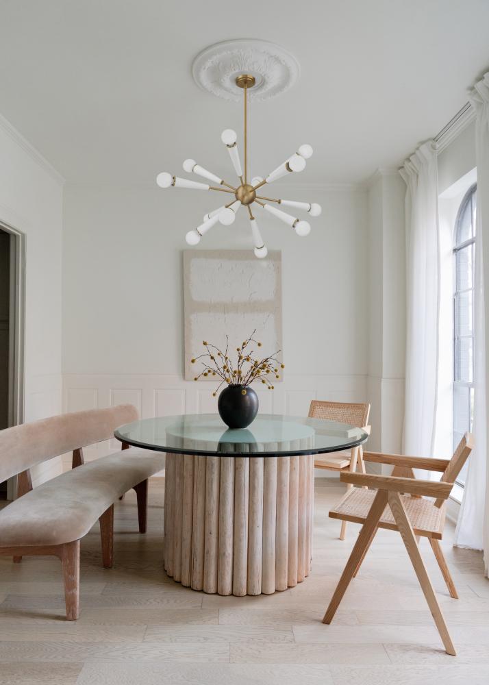 Characterized by clean lines, sculptural forms, and warm metallic or wood accents, often featuring bold shapes and playful pops of color for a retro yet timeless appeal.